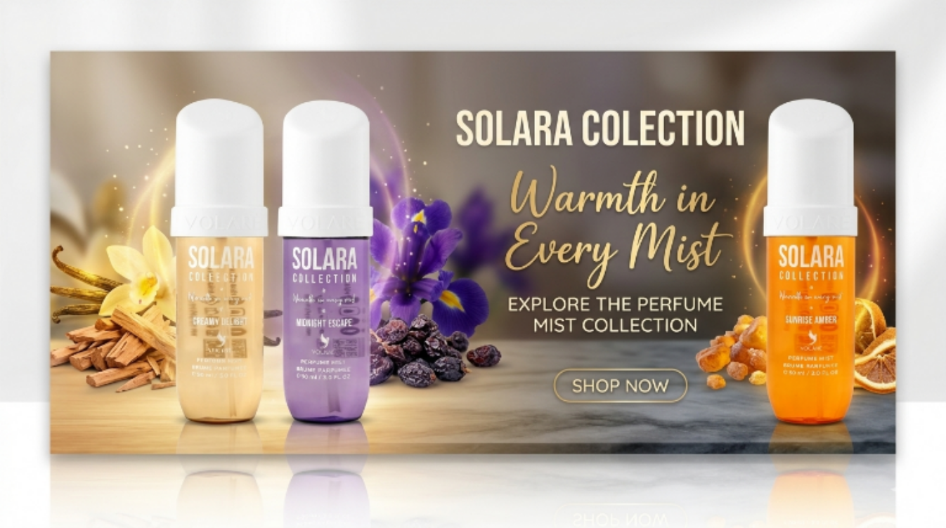 Step into a world of light, warmth, and effortless fragrance with the Solara Collection, a line of refreshing perfume mists designed to brighten every moment. Each mist captures a unique mood — from dreamy sweetness to tropical freshness and comforting warmth — creating a gentle fragrance experience that feels uplifting and easy to wear.